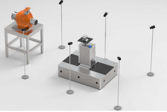 智能仪表定位机器人可应用于实验室内仪器设备需要精确定位的场合,主要由光学三维动作捕捉系统、AGV底台、四维高精度定位平台等组成。